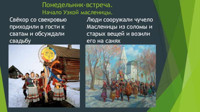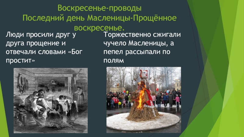 Люди сооружали чучело Масленицы из соломы и старых вещей и возили его на санях