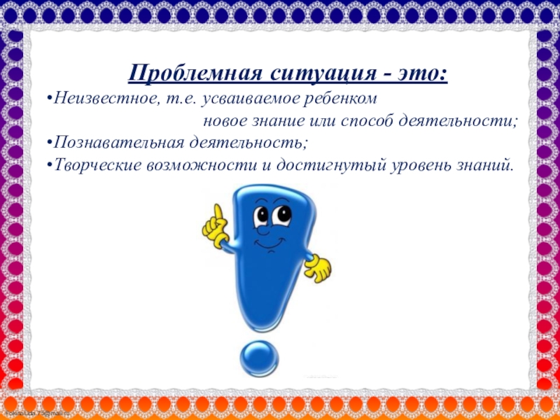 Проблемная ситуация - это: Неизвестное, т.е. усваиваемое ребенком