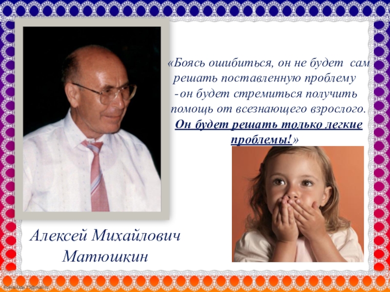 Алексей Михайлович Матюшкин«Боясь ошибиться, он не будет сам решать поставленную проблему он будет стремиться получить помощь от