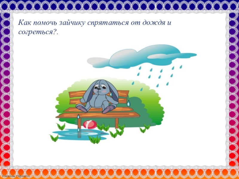 Слайд 12Как помочь зайчику спрятаться от дождя и согреться?.