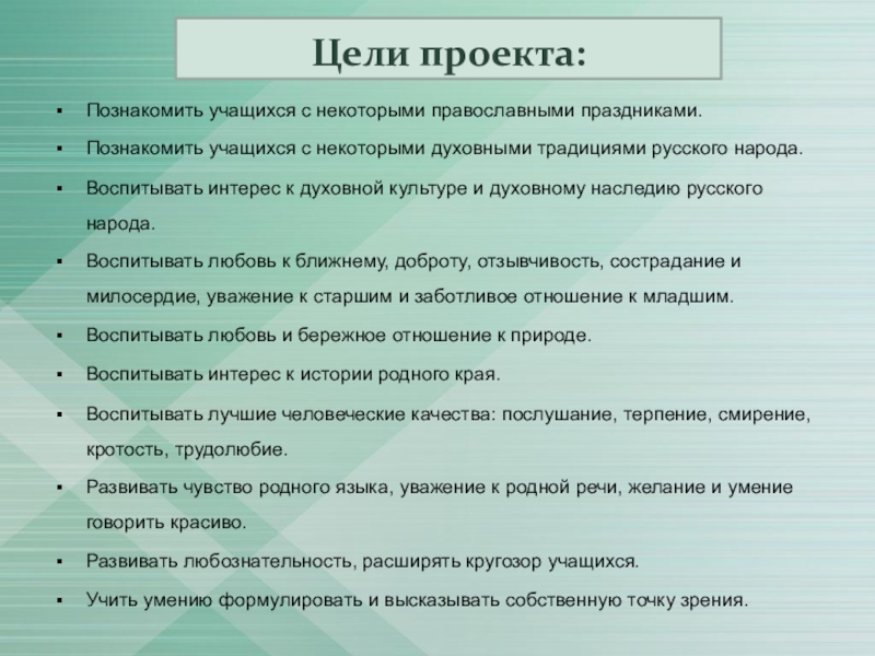 Воспитывать интерес к духовной культуре и духовному наследию русского народа.