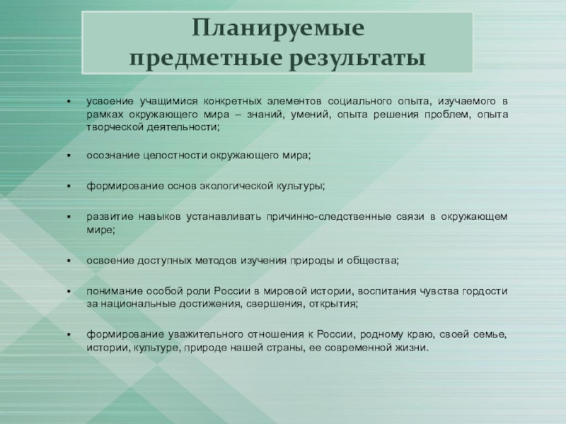 усвоение учащимися конкретных элементов социального опыта, изучаемого в рамках