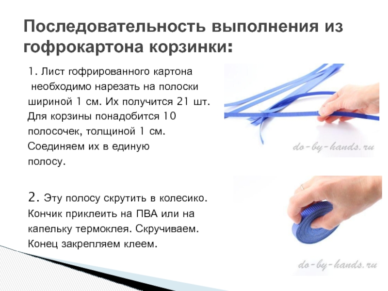 Последовательность выполнения из гофрокартона корзинки: