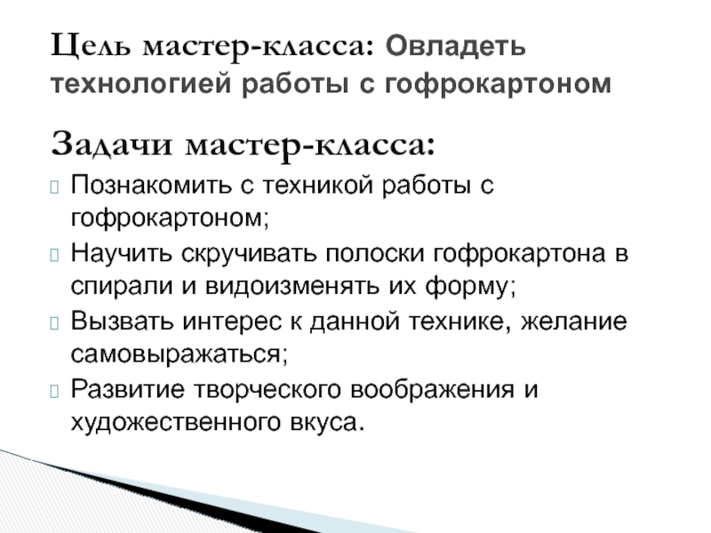 Цель мастер-класса: Овладеть технологией работы с гофрокартоном