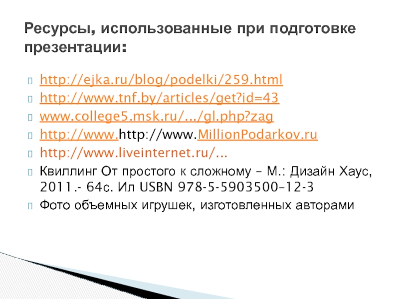Ресурсы, использованные при подготовке презентации: