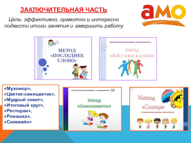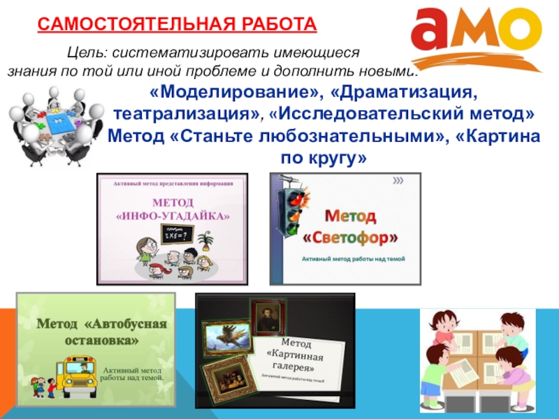 «Моделирование», «Драматизация, театрализация», «Исследовательский метод» Метод «Станьте любознательными», «Картина по кругу»