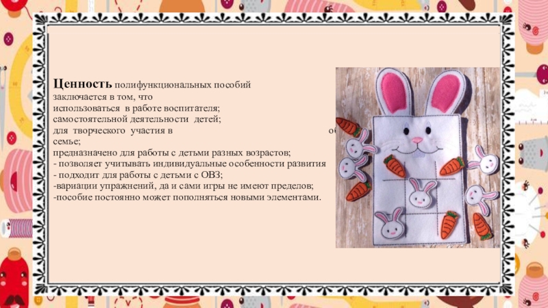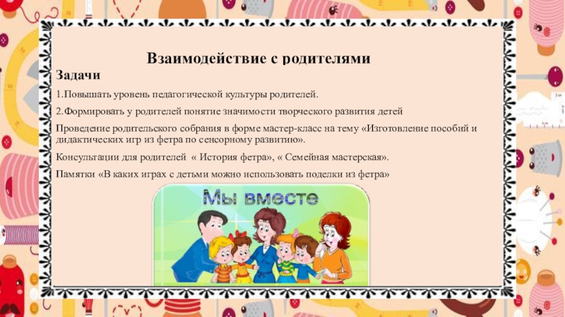 Проведение родительского собрания в форме мастер-класс на тему «Изготовление пособий и дидактических игр из фетра по сенсорному развитию».