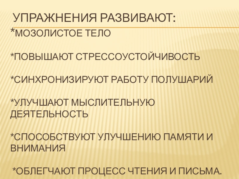 подключение движений глаз и языка к движениям рук;