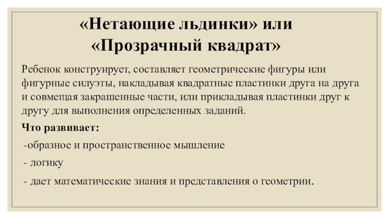 «Нетающие льдинки» или «Прозрачный квадрат»