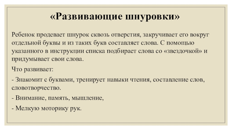 «Развивающие шнуровки»