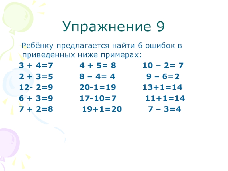Ребёнку предлагается найти 6 ошибок в приведенных ниже