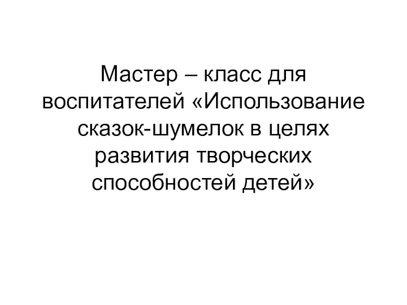 Слайд 1Мастер – класс для воспитателей «Использование сказок-шумелок в целях развития творческих