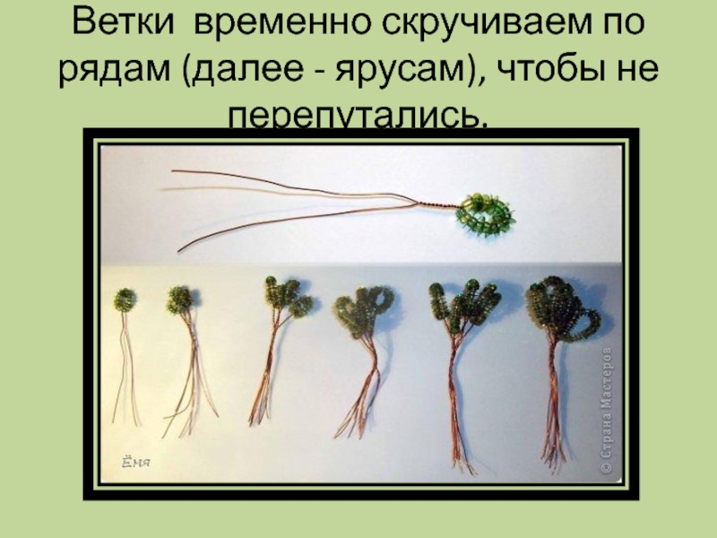 Слайд 10Ветки временно скручиваем по рядам (далее - ярусам), чтобы не перепутались.