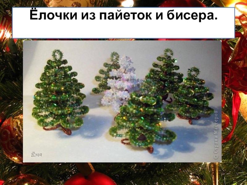 Слайд 8Ёлочки из пайеток и бисера.