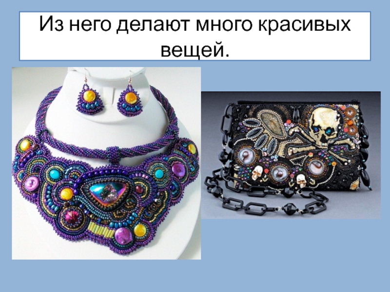 Слайд 7Из него делают много красивых вещей.