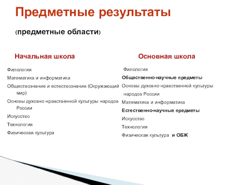 предметными, включающими освоенный обучающимися в ходе изучения учебного предмета опыт специфической для данной предметной области деятельности по получению нового знания, его преобразованию и применению, а также систему основополагающих элементов научного знания, лежащих в основе современной научной картины мира.