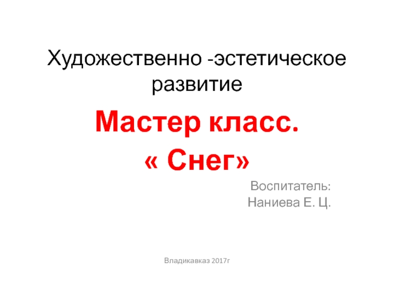 Художественно -эстетическое развитиеМастер класс.« Снег»Воспитатель:Наниева Е. Ц.Владикавказ 2017г