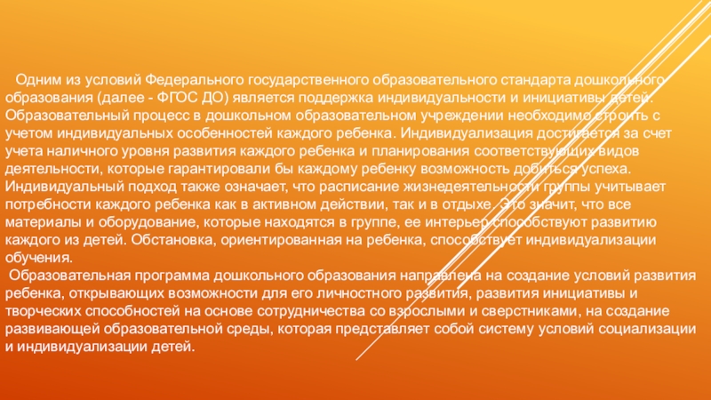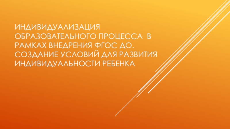 Слайд 1Индивидуализация образовательного процесса в рамках внедрения ФГОС ДО. Создание условий для