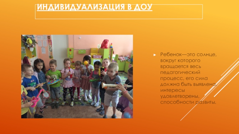 Слайд 5Индивидуализация образовательной деятельности в ДОУ основывается на принятии уникальности личности каждого