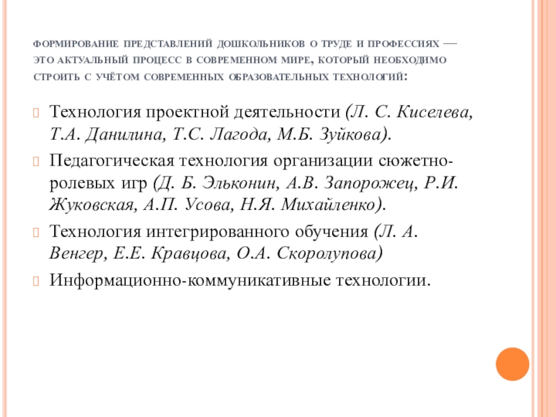 Педагогическая технология организации сюжетно-ролевых игр (Д. Б. Эльконин, А.В. Запорожец, Р.И. Жуковская, А.П. Усова, Н.Я. Михайленко).