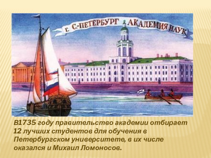 Петербургском университете, в их числе оказался и Михаил Ломоносов.
