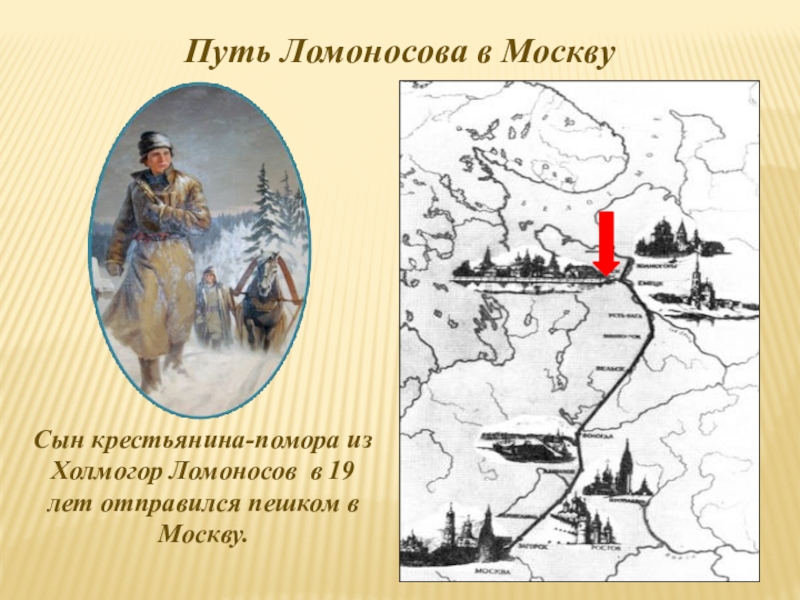 Сын крестьянина-помора из Холмогор Ломоносов в 19 лет