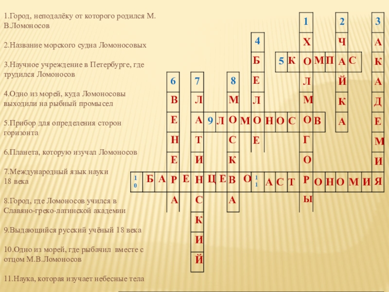 10.Одно из морей, где рыбачил вместе с отцом М.В.Ломоносов