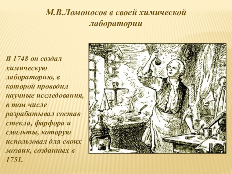 Слайд 21В 1748 он создал химическую лабораторию, в которой проводил научные исследования,