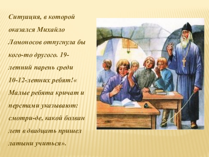 Слайд 17Ситуация, в которой оказался Михайло Ломоносов отпугнула бы кого-то другого. 19-летний