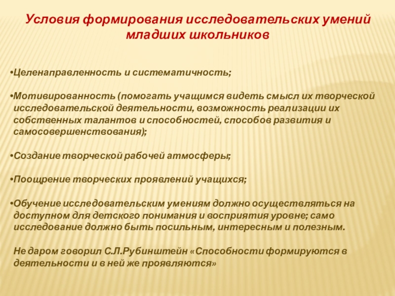 Слайд 4Условия формирования исследовательских умений младших школьников