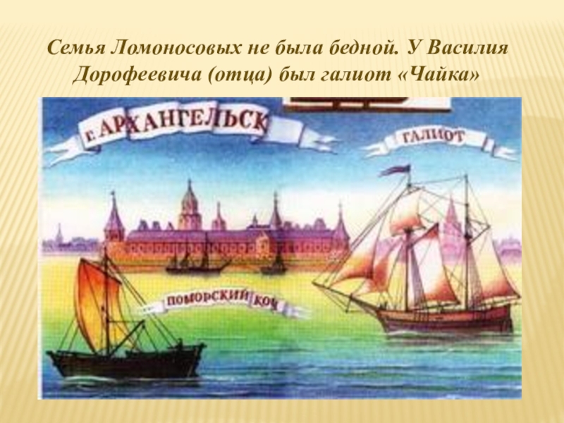 Слайд 13Семья Ломоносовых не была бедной. У Василия Дорофеевича (отца) был галиот