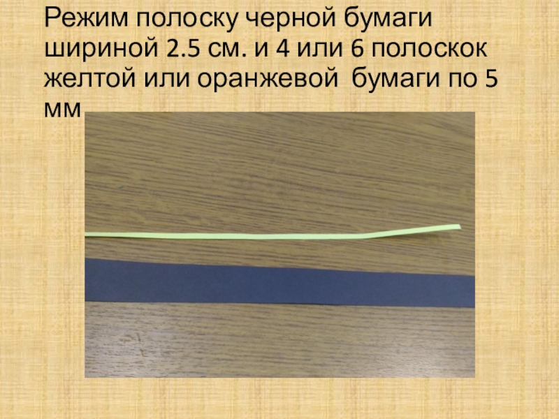 Режим полоску черной бумаги шириной 2.5 см. и 4 или 6 полоскок желтой или оранжевой бумаги по