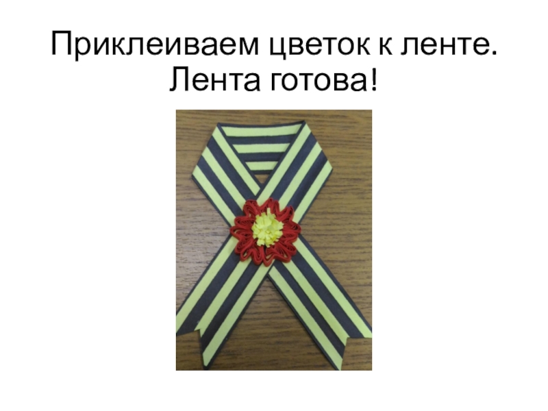 Слайд 7Приклеиваем цветок к ленте. Лента готова!