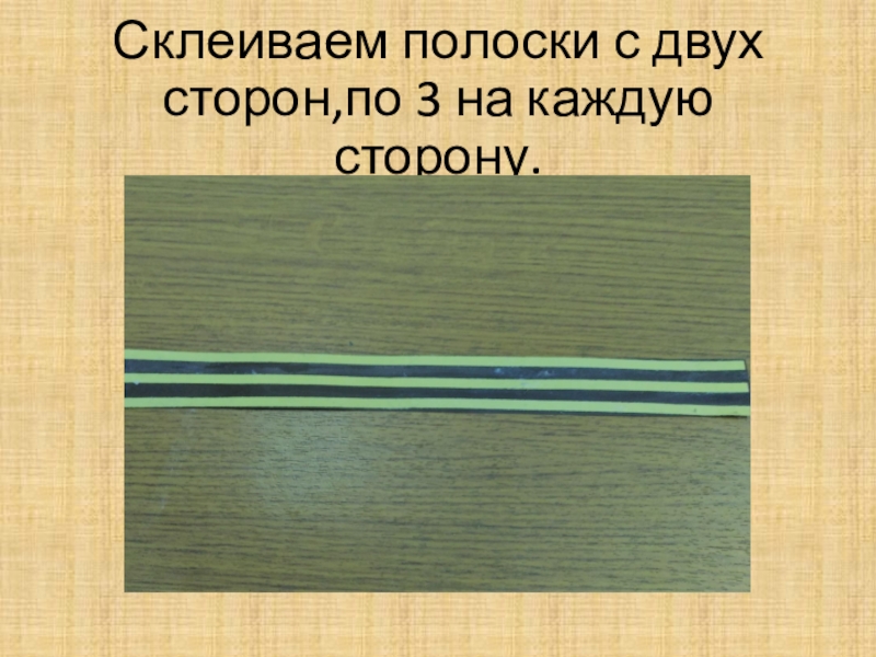 Слайд 3Склеиваем полоски с двух сторон,по 3 на каждую сторону.