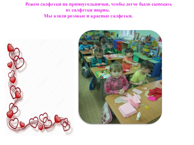Мы взяли розовые и красные салфетки.