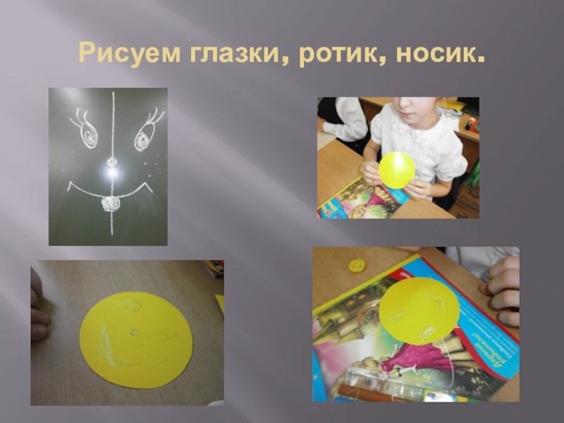 Слайд 4Рисуем глазки, ротик, носик.