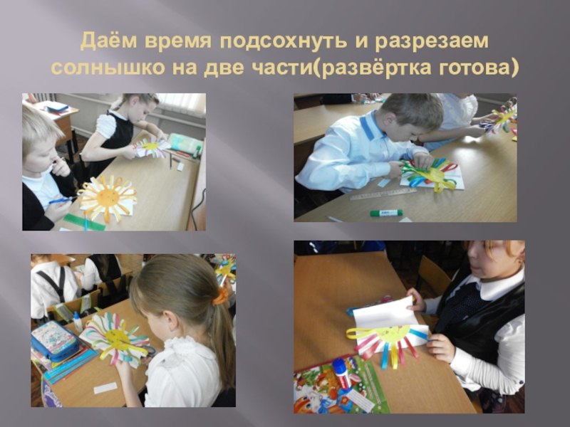Слайд 8Даём время подсохнуть и разрезаем солнышко на две части(развёртка готова)