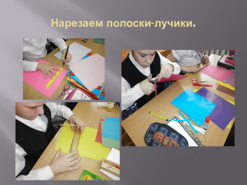 Слайд 5Нарезаем полоски-лучики.