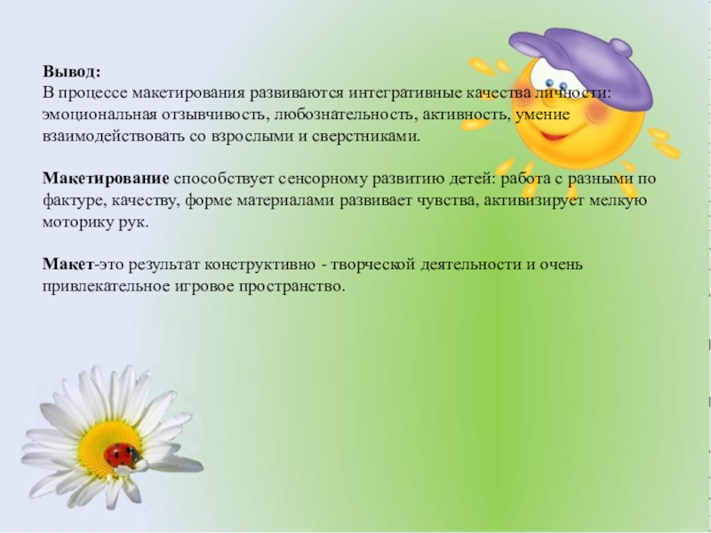 Подводя итоги, следует отметить, что макет-это центральный элемент, организующий предметную среду