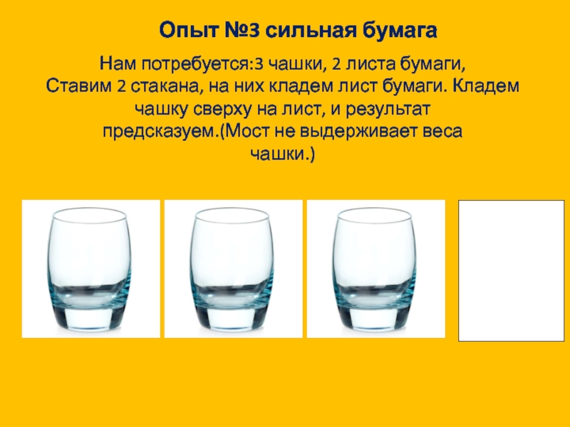 Нам потребуется:3 чашки, 2 листа бумаги,