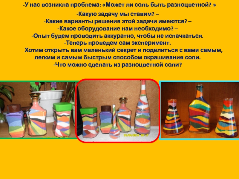 -У нас возникла проблема: «Может ли соль быть разноцветной? »