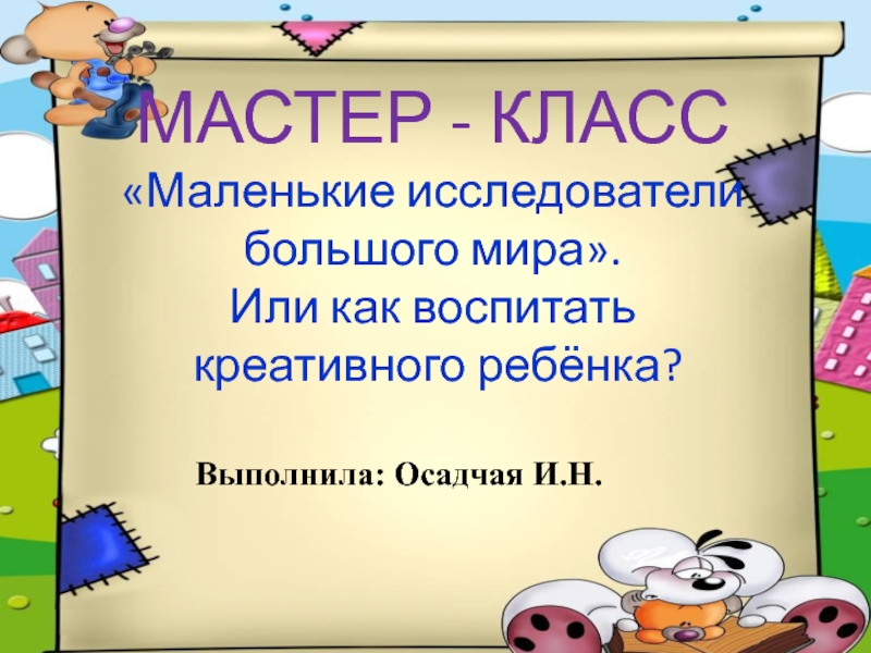 творческая личность, способная к активному познанию окружающего, проявлению самостоятельности, исследовательской активности. Поэтому уже в дошкольном возрасте необходимо заложить первоосновы личности, проявляющей активные исследовательско - творческое отношение к миру.