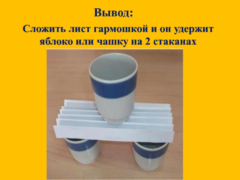Сложить лист гармошкой и он удержит яблоко или чашку на