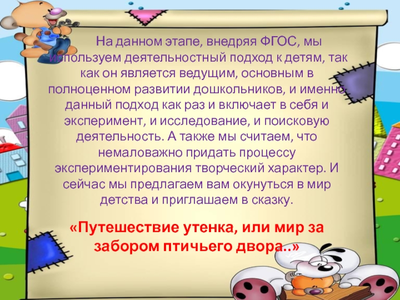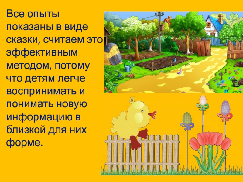 Все опыты показаны в виде сказки, считаем это эффективным методом,