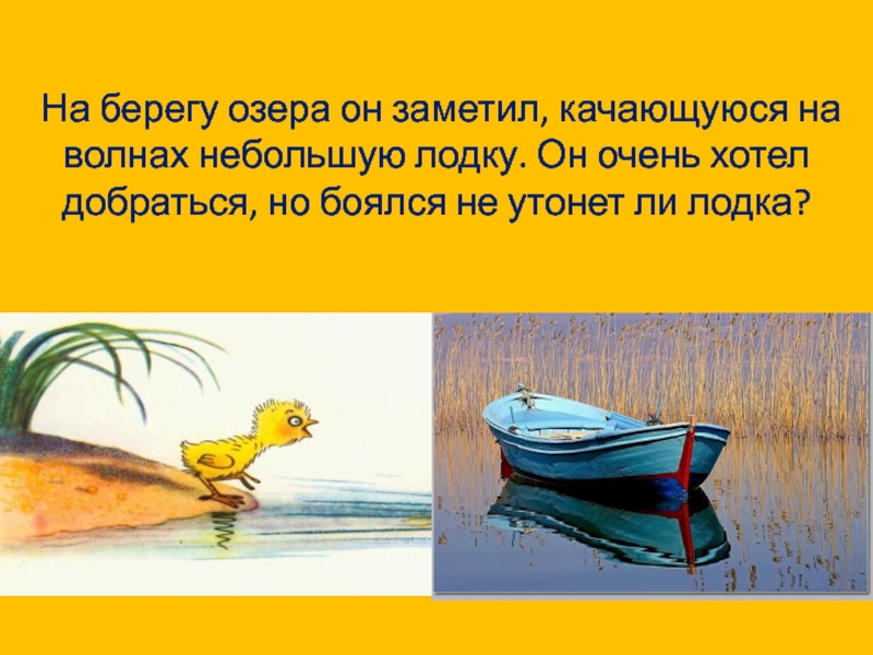 На берегу озера он заметил, качающуюся на волнах небольшую лодку.