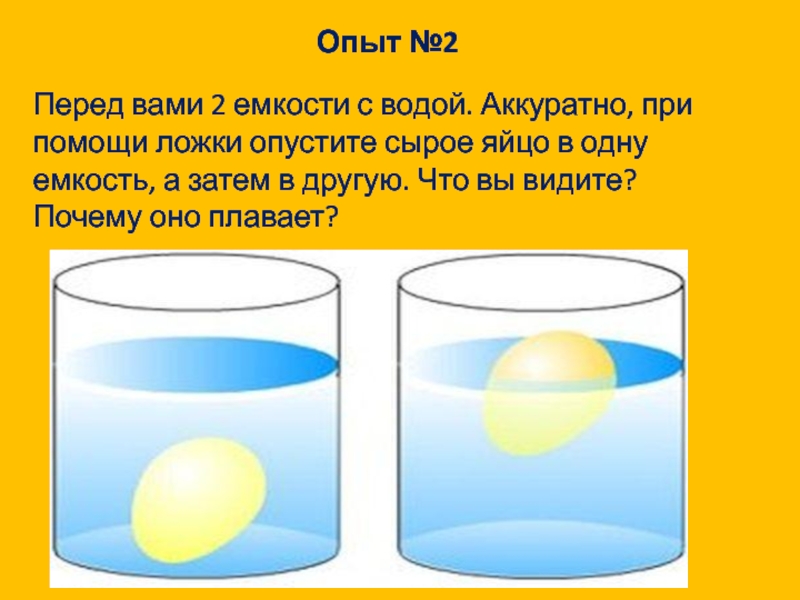 ложки опустите сырое яйцо в одну емкость, а затем в другую. Что вы видите?