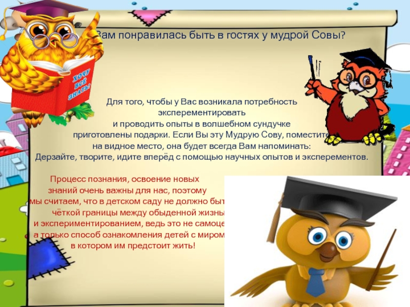 приготовлены подарки. Если Вы эту Мудрую Сову, поместите