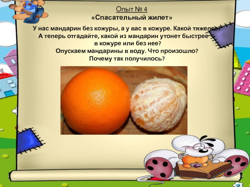 А теперь отгадайте, какой из мандарин утонет быстрее —