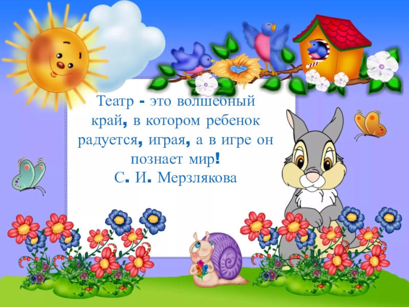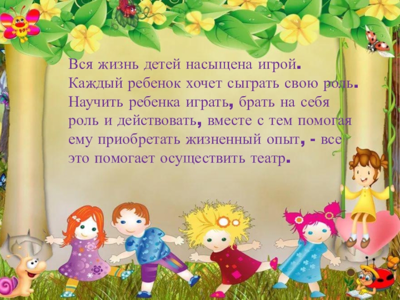 Слайд 3Театр - это волшебный край, в котором ребенок радуется, играя, а