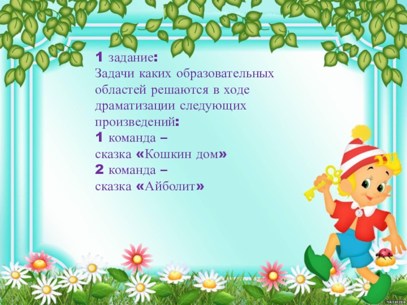 Задачи каких образовательных областей решаются в ходе драматизации следующих произведений: